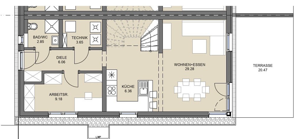 Moderne, energieeffiziente Technik wie Luftwärmepumpe, Fußbodenheizung, 3-fach-Verglasung und elektrische Rollläden sorgt für Komfort und niedrige Betriebskosten. Zudem sind die Häuser bereits für Photovoltaik und E-Mobilität vorbereitet. Die Übergabe erfolgt belagsfertig, auf Wunsch auch schlüsselfertig.
