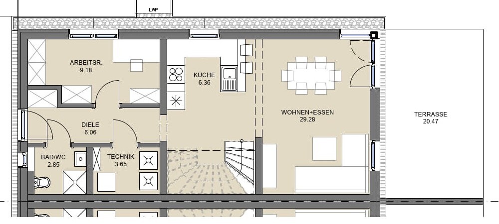 Moderne, energieeffiziente Technik wie Luftwärmepumpe, Fußbodenheizung, 3-fach-Verglasung und elektrische Rollläden sorgt für Komfort und niedrige Betriebskosten. Zudem sind die Häuser bereits für Photovoltaik und E-Mobilität vorbereitet. Die Übergabe erfolgt belagsfertig, auf Wunsch auch schlüsselfertig.
